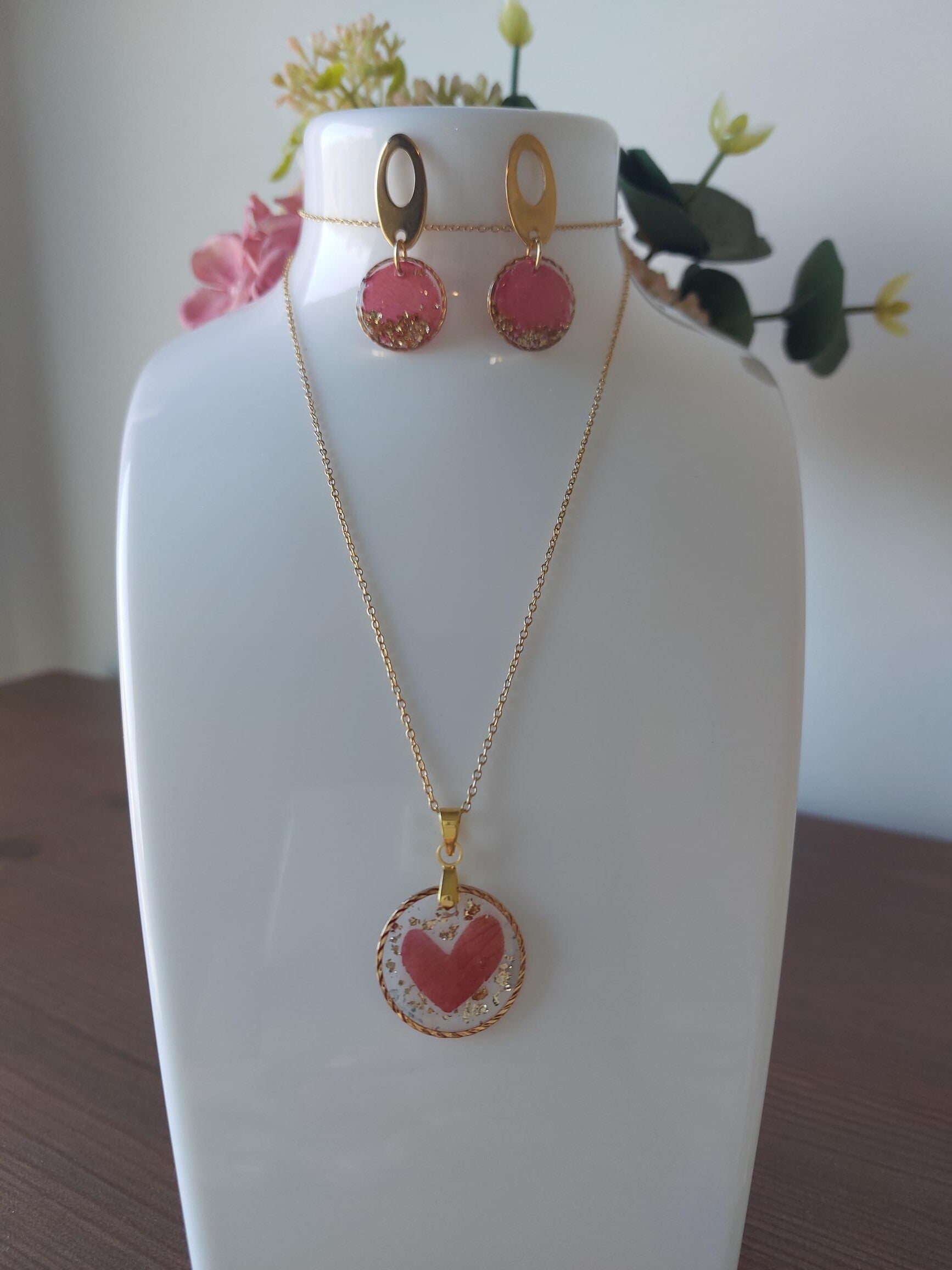 Handgemaakt set hanger met oorbellen , (epoxy) nr.O11